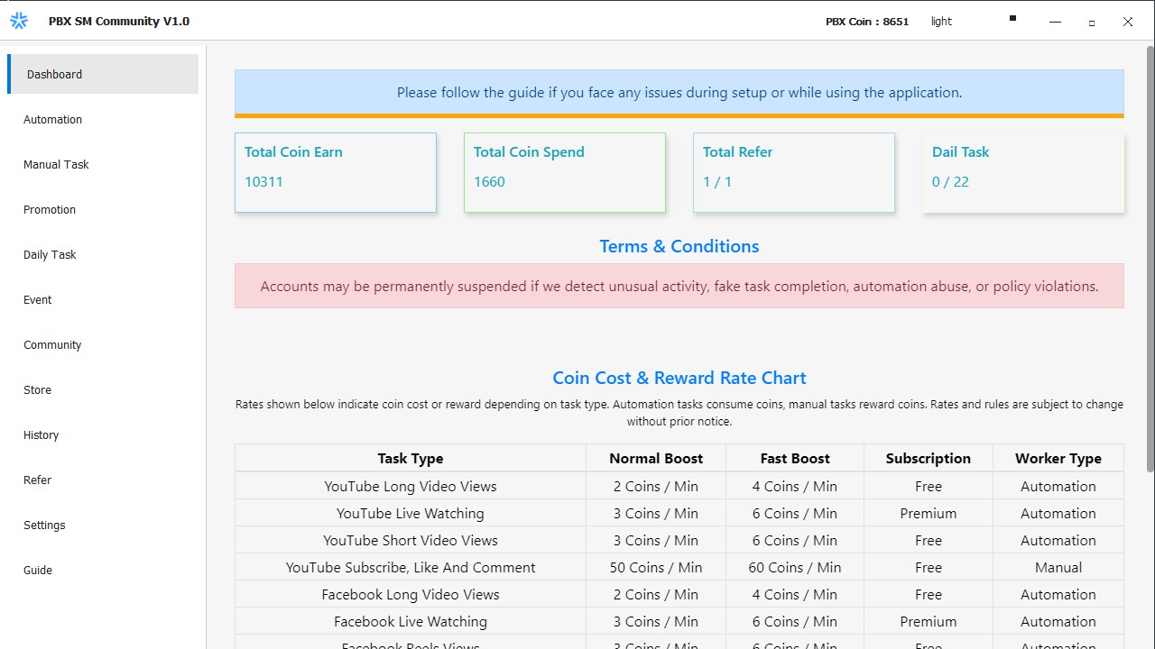 PBX Automation is designed to help users manage activity responsibly. We strongly recommend following platform policies, using safe limits, and avoiding aggressive behavior. PBX does not encourage misuse or abuse of any platform.