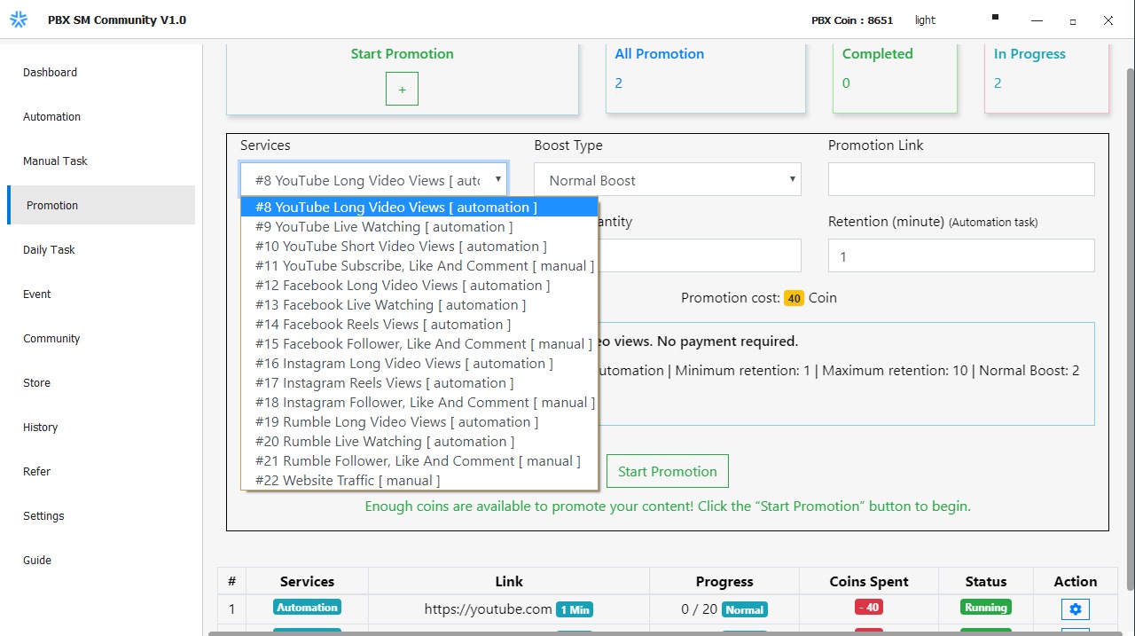 Start automation and earn coin.